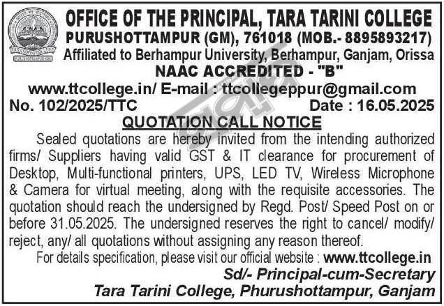 Tara Tarini College,Purushottampur,Ganjam , Odisha - 761018